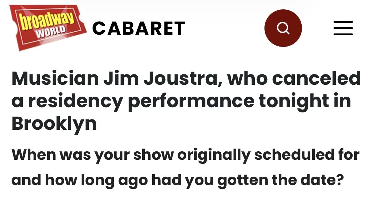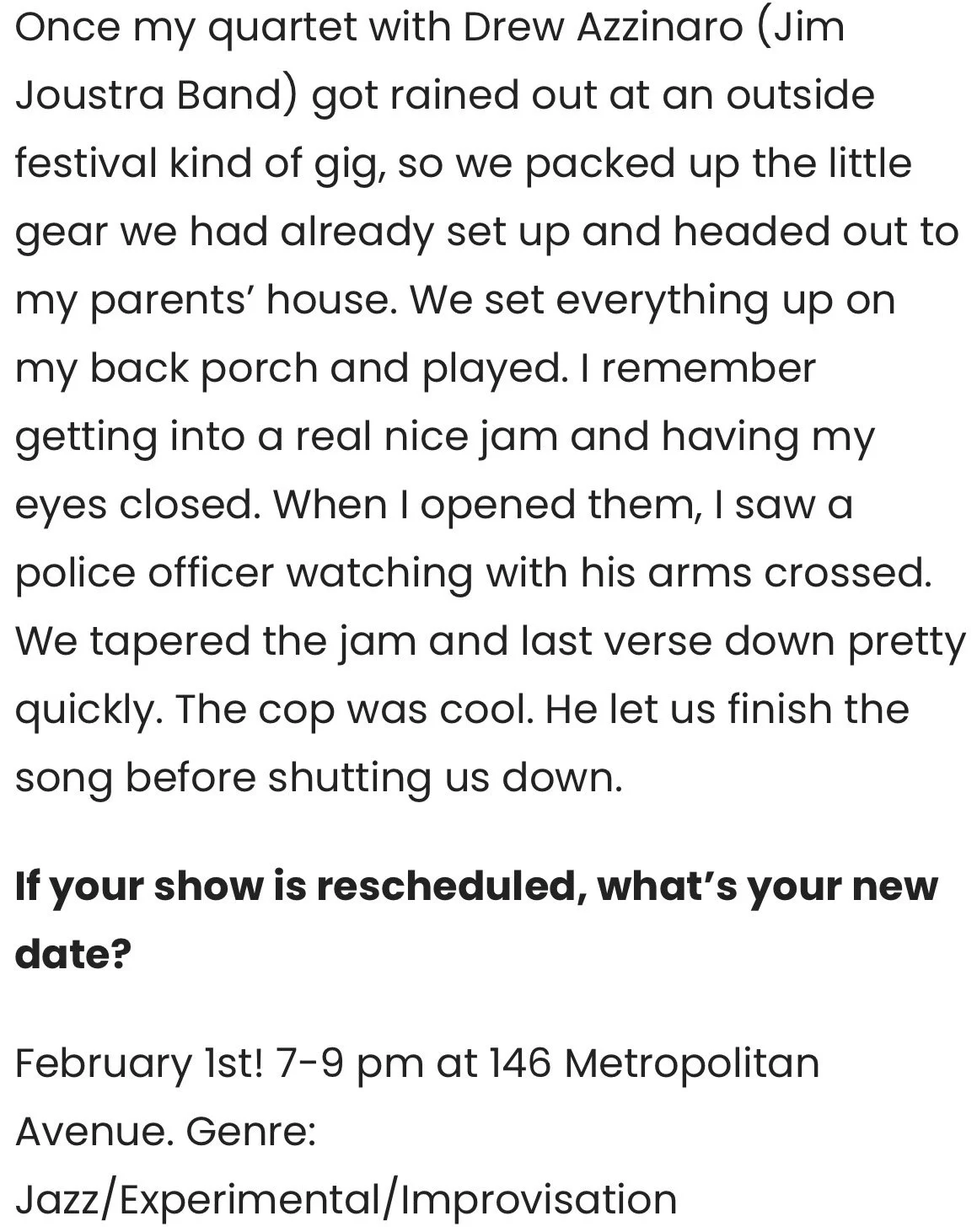 After a US-wide snowstorm, Jim Joustra talks all things gigs, weather cancellations, and getting shut down by the cops!